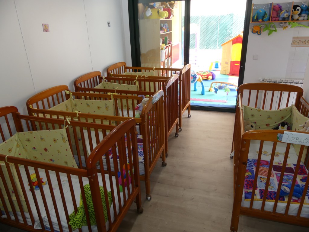 Todos dormimos una siesta de 13.00 a 15.00. Carlota duerme poco y la profe le cambia, le pone guapa con colonia y juegan un rato hasta que nos despertamos el resto. A Gabriela hay que despertarla, si no, no le da tiempo a merendar.